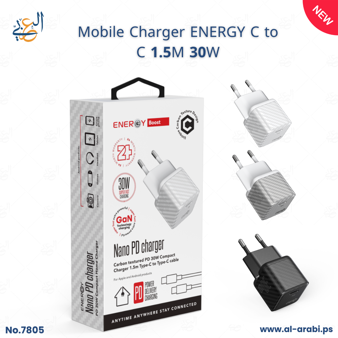 شاحن موبايل ENERGY C to C 1.5M 30W