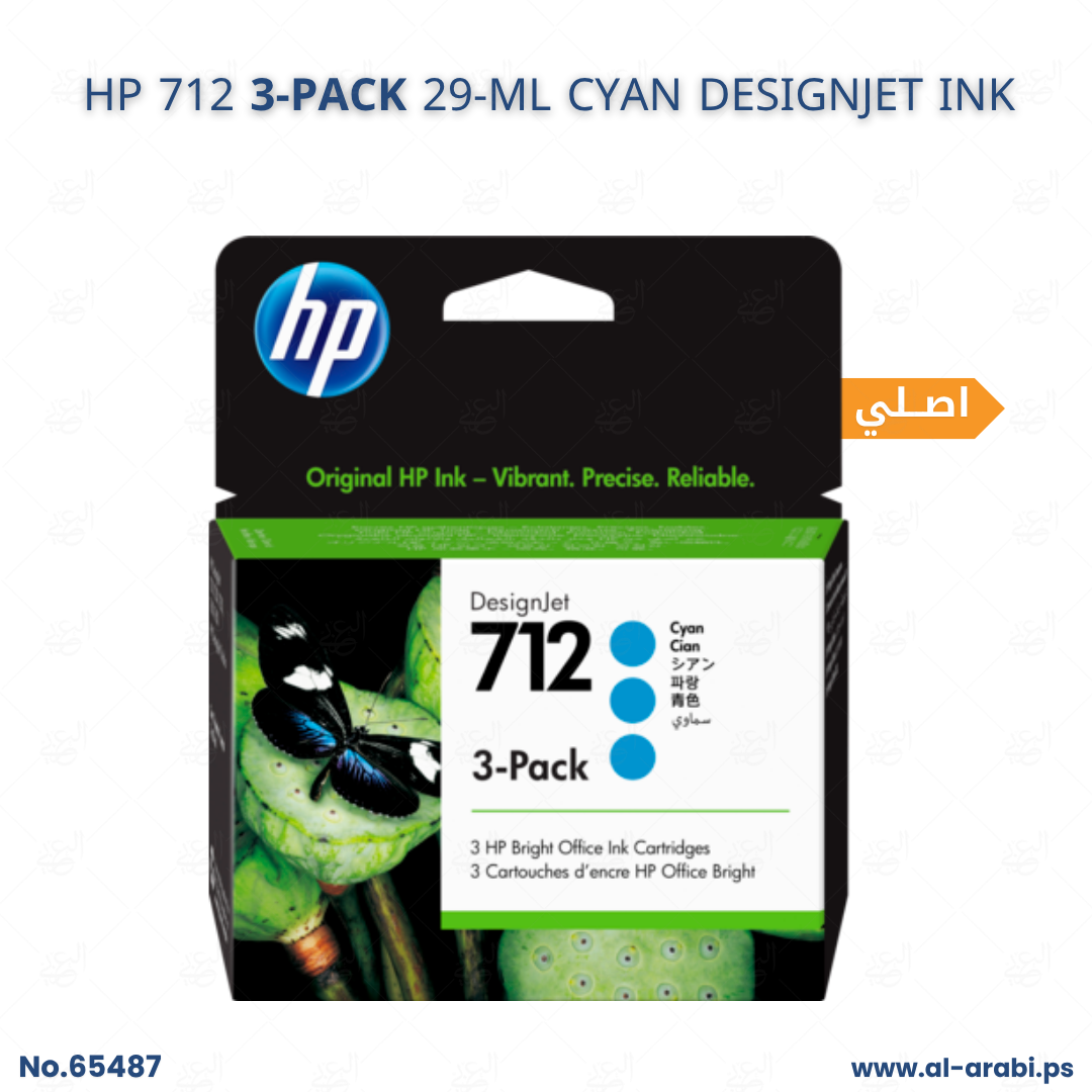 حبر HP 712 3-Pack 29-ml Cyan DesignJet Ink اصلي
